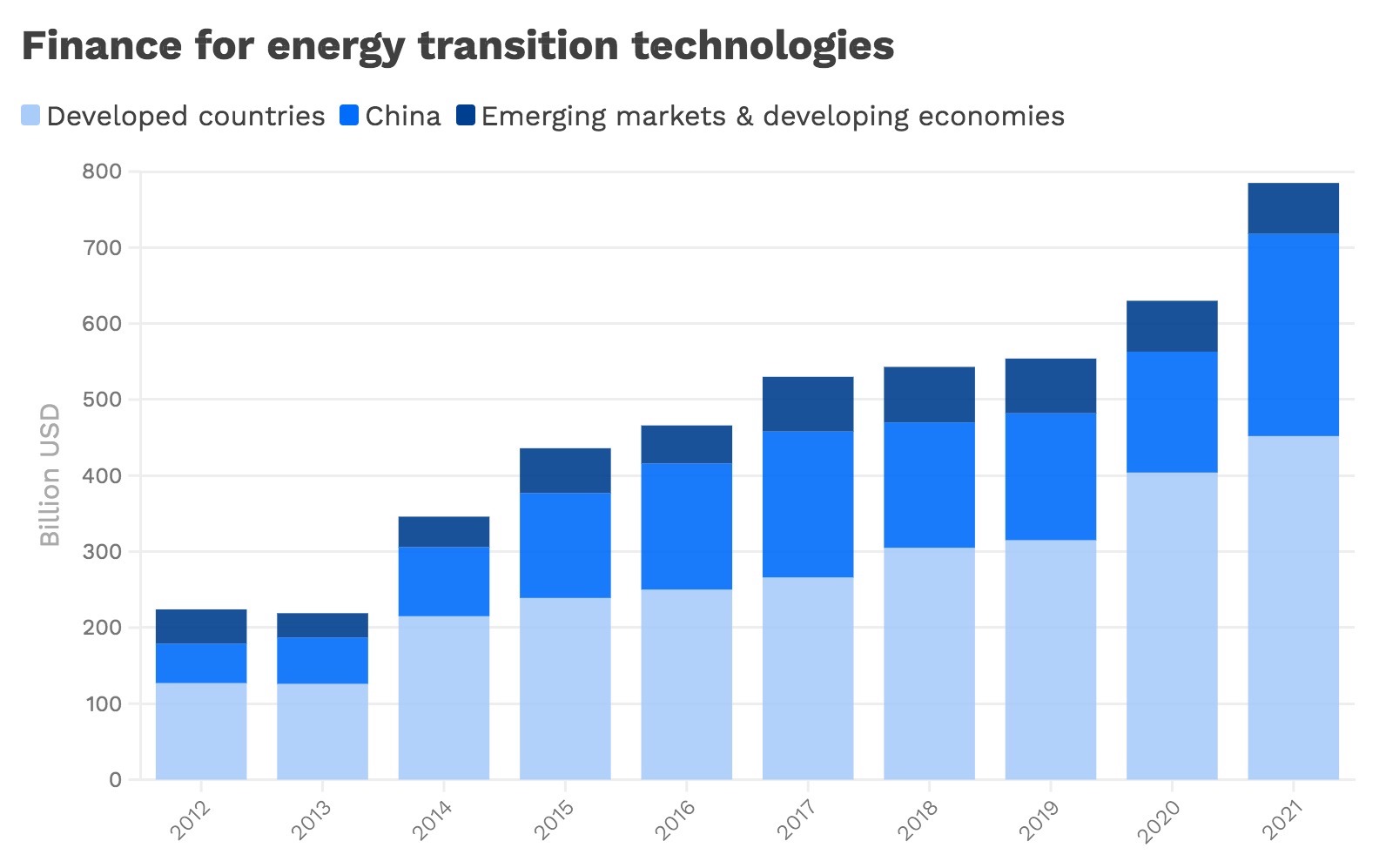 Meanwhile, last year the share of financing for energy transition technologies going to emerging markets and developing economies stood at 8%, the lowest level in 10 years and far below the 20% peak in 2012, the report found.