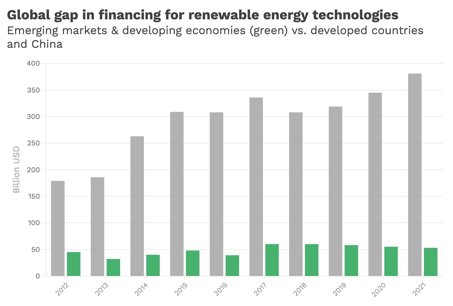 Not enough cash is flowing to clean energy technologies in the developing world, widening the investment gap between rich and poorer countries and hampering the energy transition.
