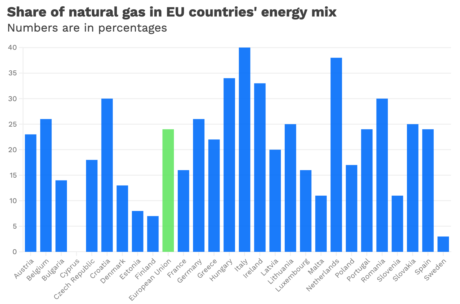 Two data points help clarify things: how dominant natural gas is in a given energy mix and how dependent that mix is on imports (specifically Russian imports), which indicate vulnerability to a supply disruption.