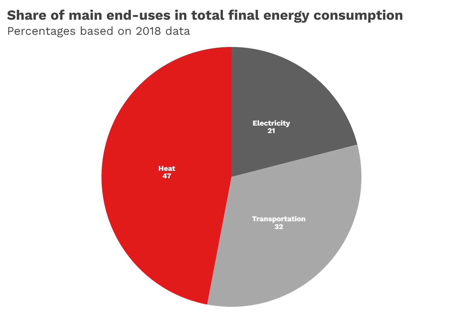 Buildings account for 47% of heating demand, largely for space and water heating, according to the IEA.