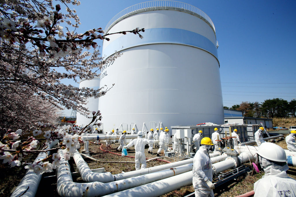 Members of the Fukushima prefectural government’s expert committee responsible for monitoring the reactor decommissioning effort at the plant, inspect the crippled Fukushima Daiichi Nuclear Power Plant on April 9, 2014 in Okuma, Fukushima, Japan. Photo by The Asahi Shimbun via Getty Images.