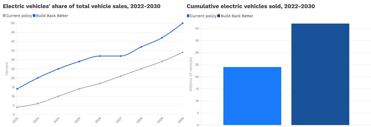 Compared to current policy, which includes the recently enacted $1.2 infrastructure law, the Build Back Better policy would, by 2030, mean: