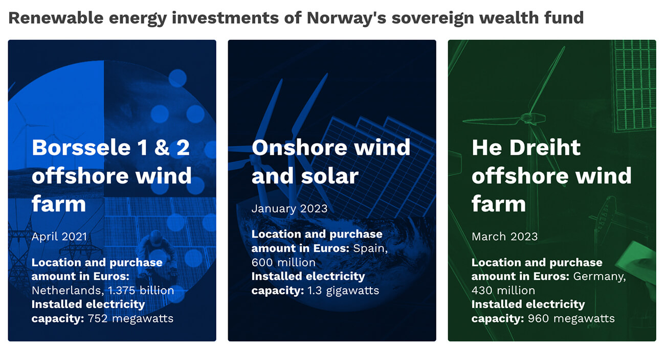 The Norwegian government, which first created the fund more than 30 years ago and controls its mandate, only adjusted the rules in 2020 to even allow direct investments into renewable energy infrastructure.